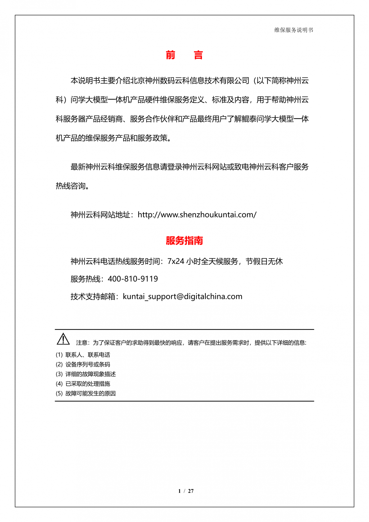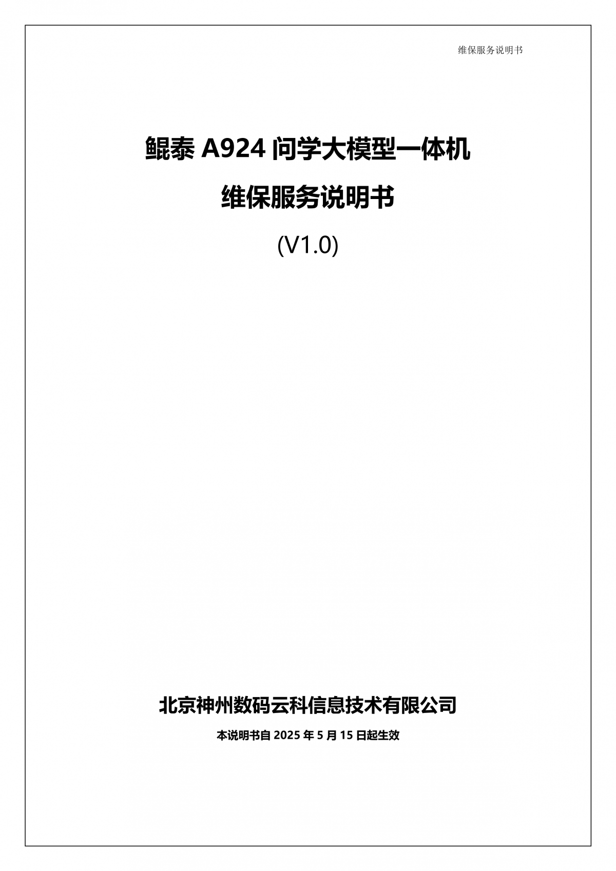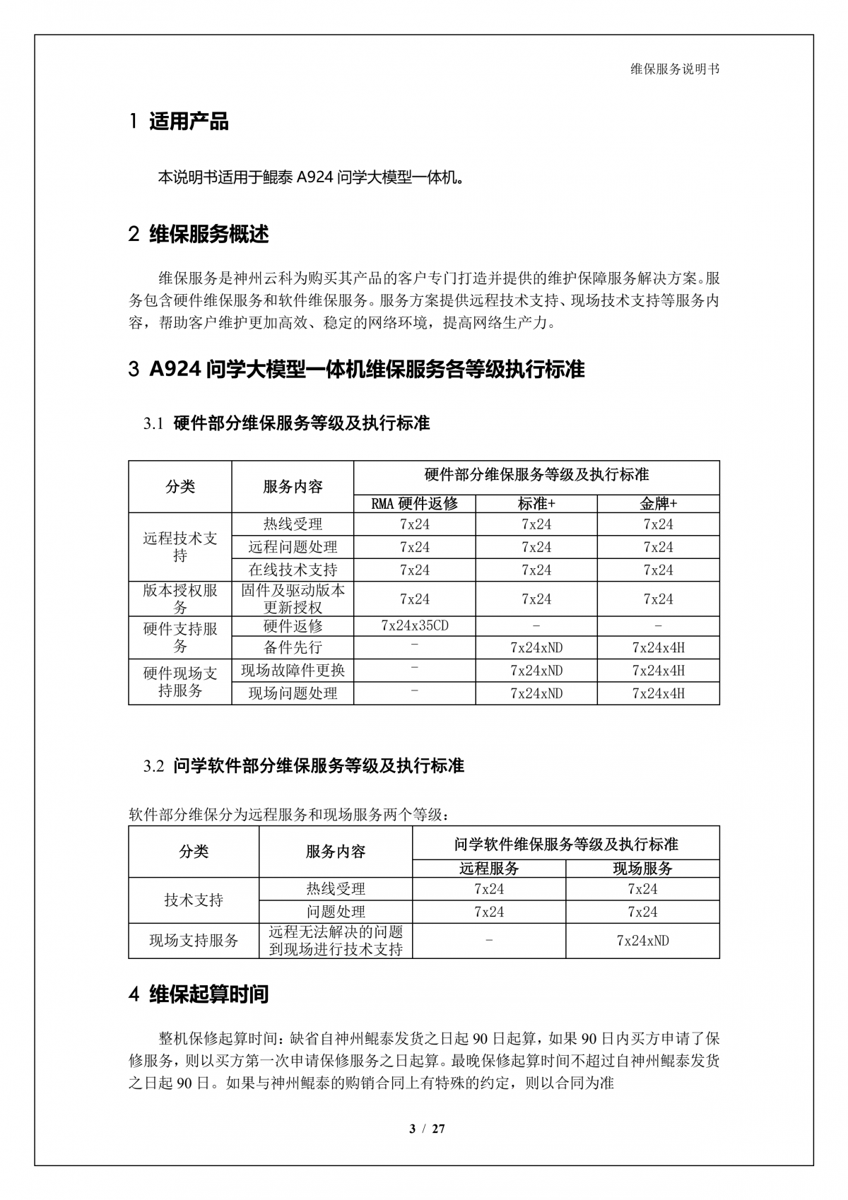 mile米乐M6A924 问学大模型一体机维保服务说明书_V1.0