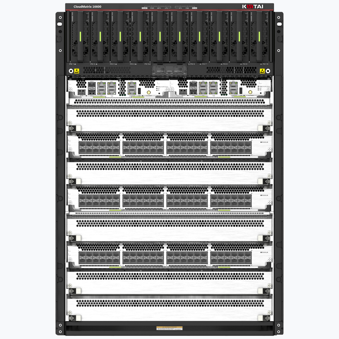 CM16608-AH | CM16608-AH 交换机研讨机箱(含8个业务插槽,2个引擎插槽,6个交换网板插槽(未来可扩展到9),10个电源槽位,满配3个风机盒),需另行选配研讨电源、板卡及软件&许可方可使用 | |