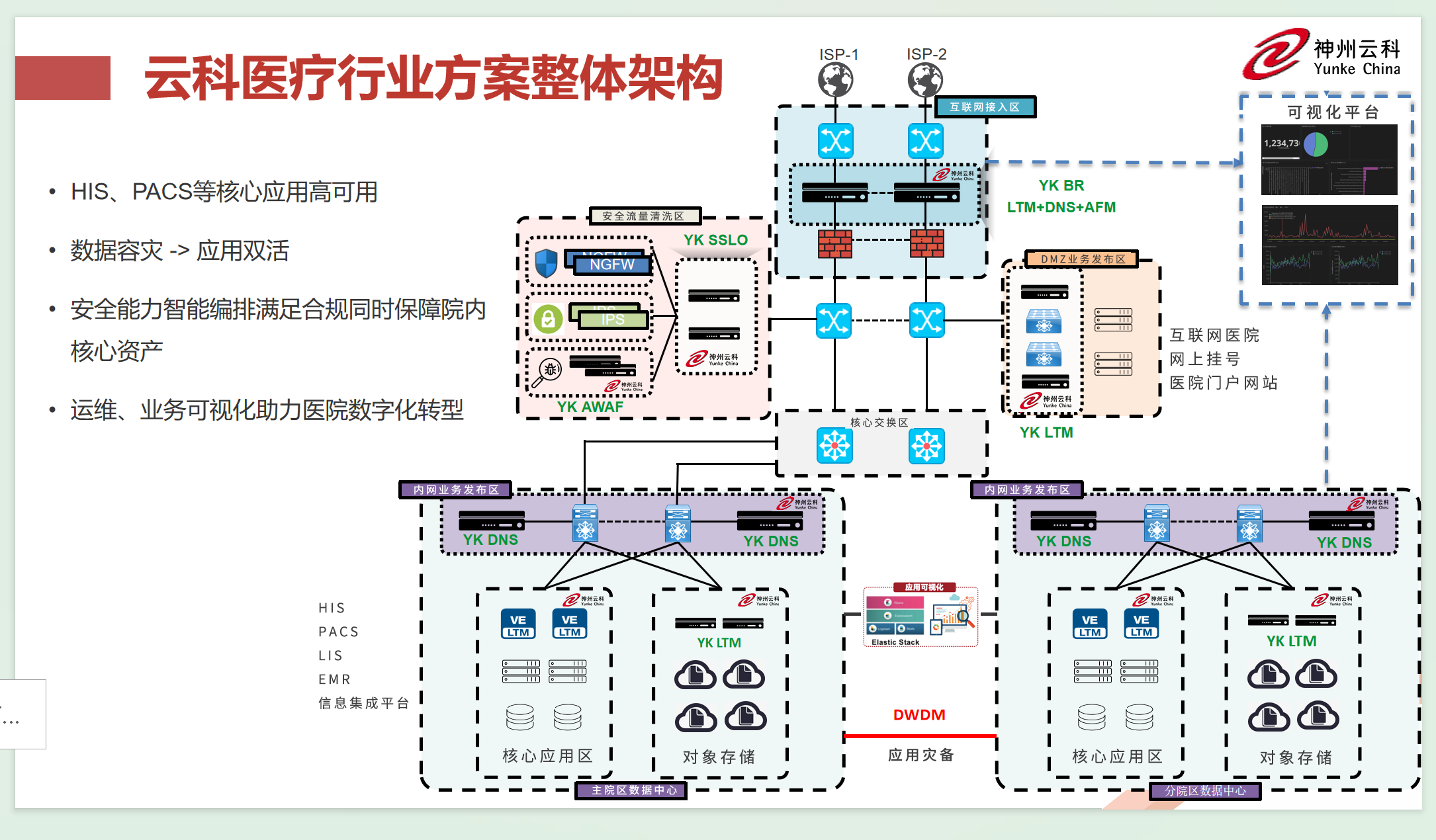 在电子病历4升5,以及互联互通五乙的评审要求中,均提出了核心系统RTO/RPO提出了小于15分钟的要求。mile米乐M6应用双活解决方案,拥有国内最多的双活实施案例,帮助医院用户轻松实现HIS、PACS、EMR等核心应用在单院区出现故障时的快速转院区访问,保障了医院应用系统的高可用性和高可靠性。
