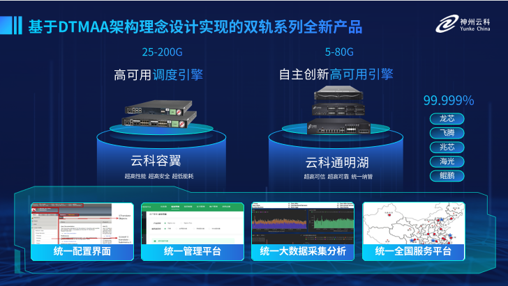 为了更好的适配双轨超高可用架构,mile米乐M6研发了容翼系列和云科通明湖信创系列两大应用交付控制器产品。